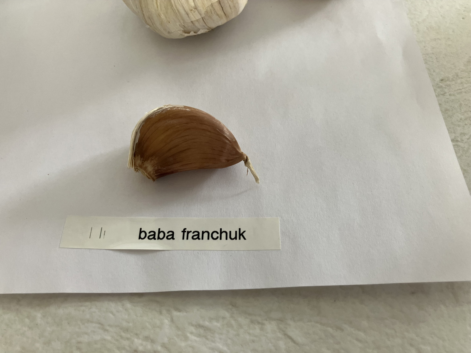 Bulbs typically average about seven large cloves, making them easy to handle for both planting and cooking purposes. Baba Franchuk’s garlic is recognized for its initially sharp, robust garlic flavor that transitions smoothly into a mellow, long-lasting aftertaste. This makes it especially suited for roasting, sautéing, and gourmet dishes where garlic flavor is key.