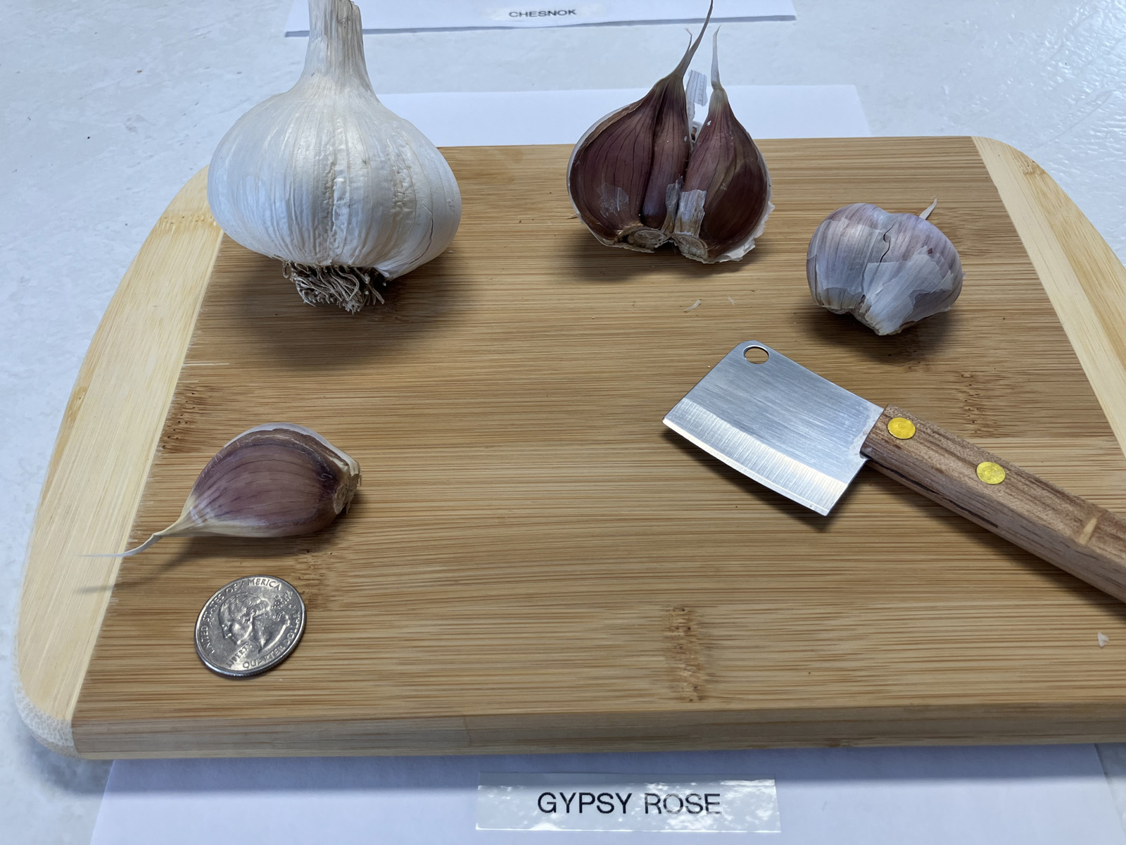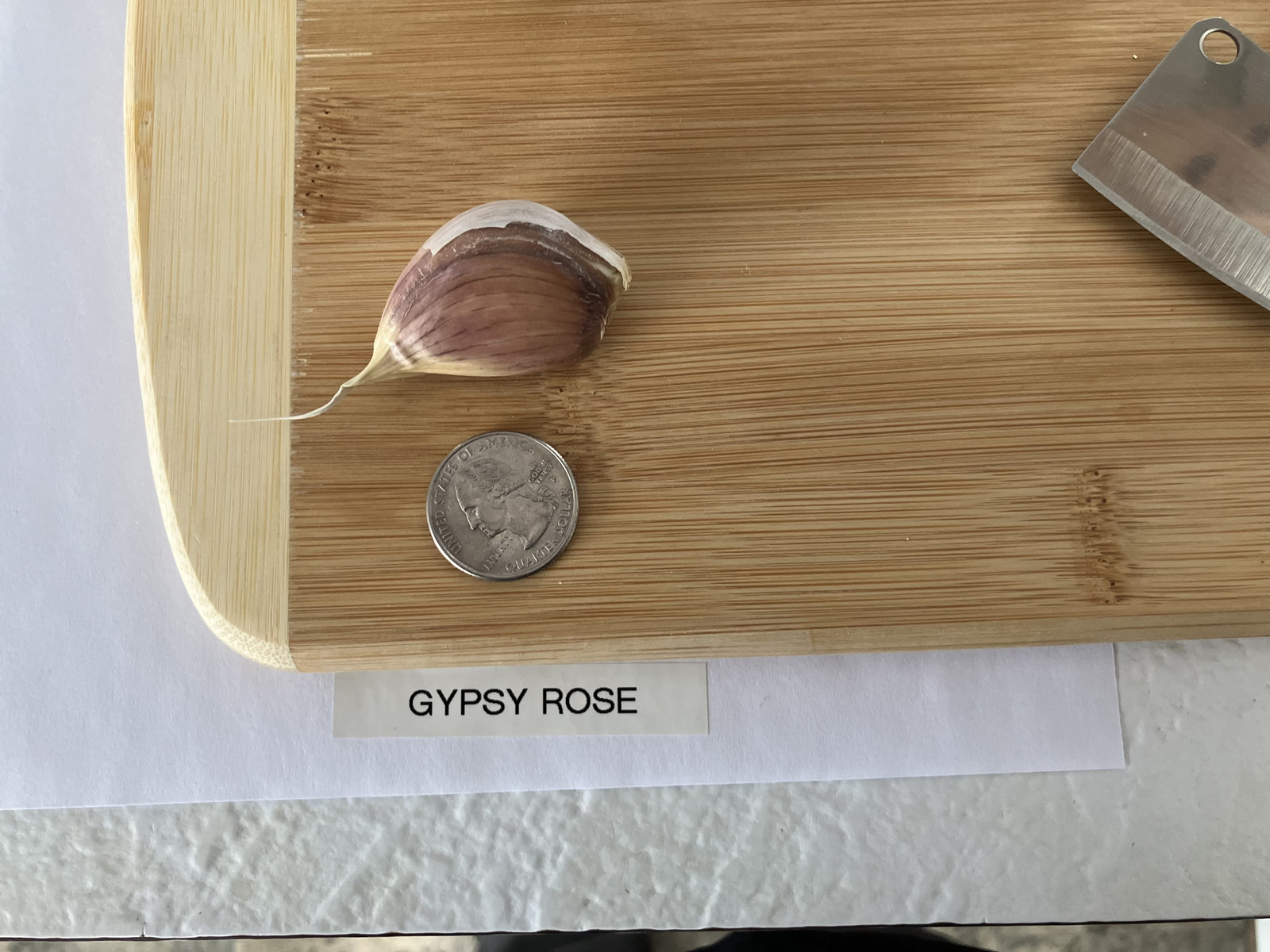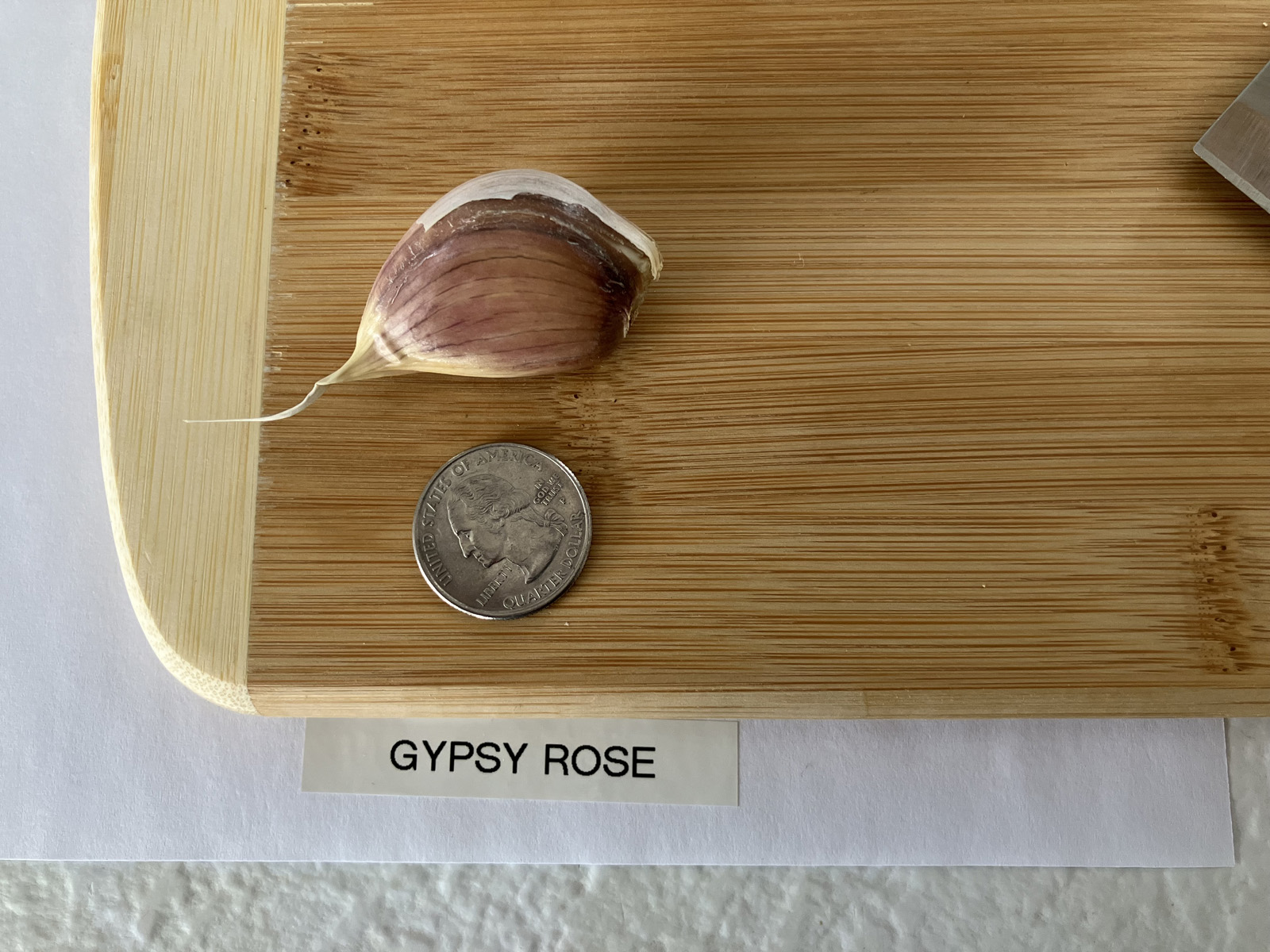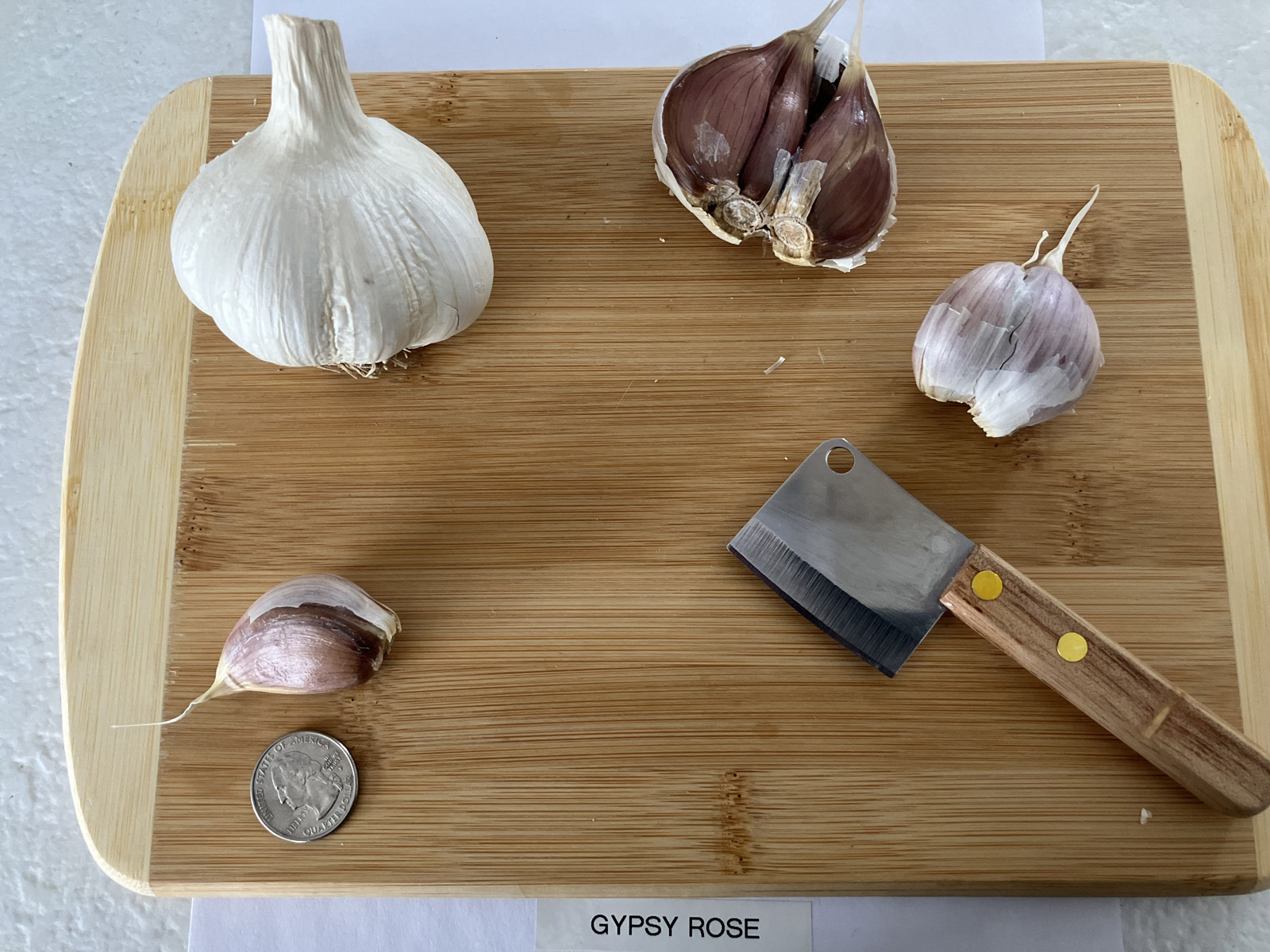 Named for the distinctive star-shaped appearance at the tips of peeled cloves, Gypsy Rose garlic provides convenience in preparation and an attractive presentation. It shares similarities in flavor and growing habits with popular varieties like German White and Music, offering a milder yet flavorful garlic taste that enhances dishes without overwhelming them.
